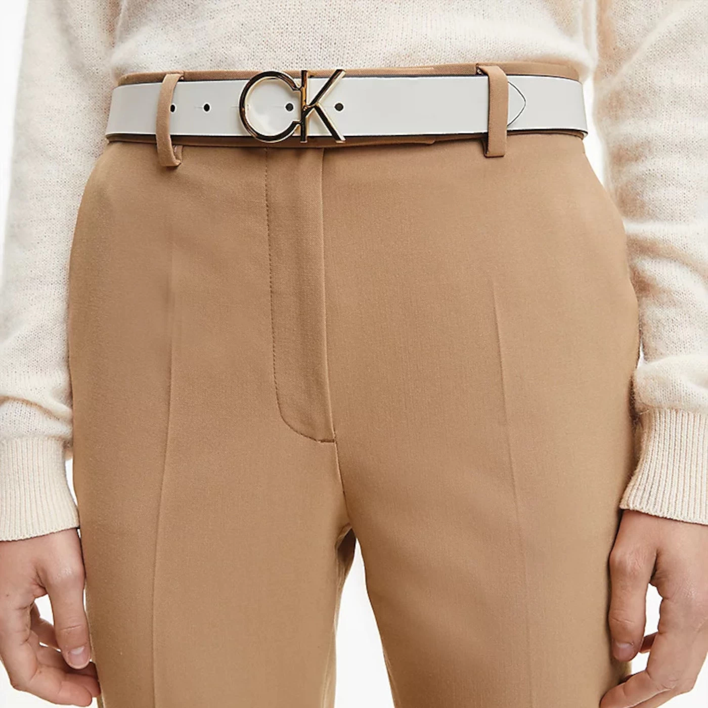 this Calvin Klein Re-Lock White Belt K60K6101560GO for women.
